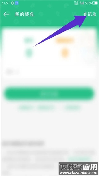 进入我的钱包页面后,点击右上角的“查记录”按钮。