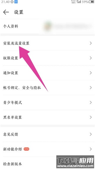 在打开的设置页面中,选择“安装及流量设置”选项。