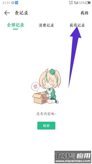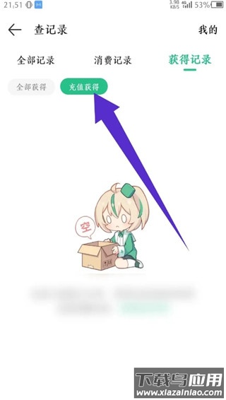 在获得记录列表中,点击“充值获得”即可查看详细的充值历史。