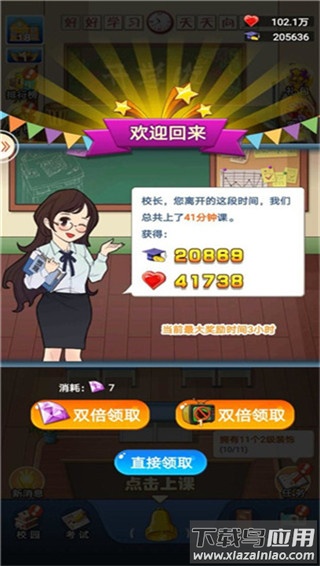 离线挂机是最简单的学费来源。校长离线后,游戏自动累积收益,上线即可领取。若觉得收益不足,可通过观看广告或消耗钻石获取双倍收益。收益越多,所需钻石也相应增加。