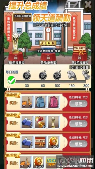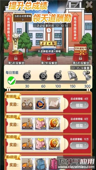 首次天道酬勤活动通常在开服十几天后开启,伴随“先进班级”与“校盟冲榜”活动出现。值得注意的是,开服前四天是“先进班级”和“文明学校”冲榜,建议战略性地保留实力,不必强行争夺前四名,能不开新科目就暂缓,将积累的资源集中用于首次天道酬勤。
