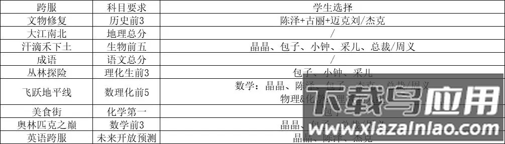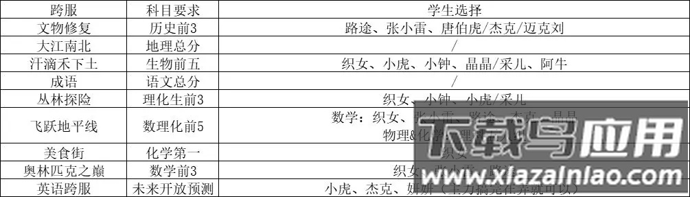 1. 参与所有跨服活动,基础阵容配置为5名理科生与3名文科生;