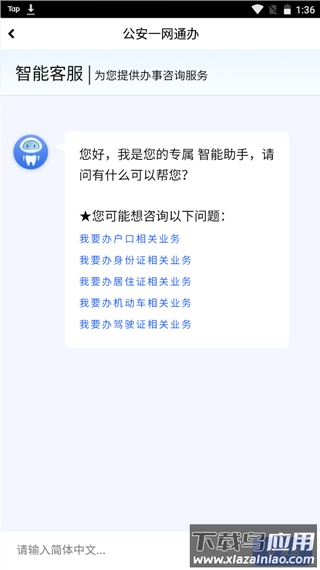 3、点击界面中的机器人图标,即可使用智能客服功能,获取各类业务办理的咨询与解答;