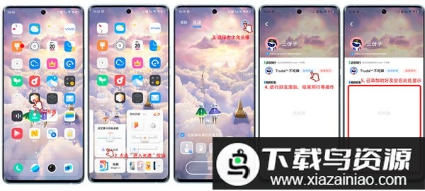 好友互动功能支持两人操作,长按屏幕中的角色,会随机选择一个互动动作并分享给对方。