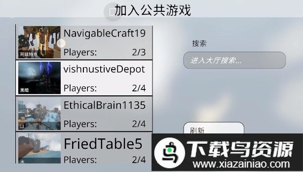4、连接成功后,在游戏大厅内搜索好友创建的队伍名称,点击加入即可开始联机畅玩;