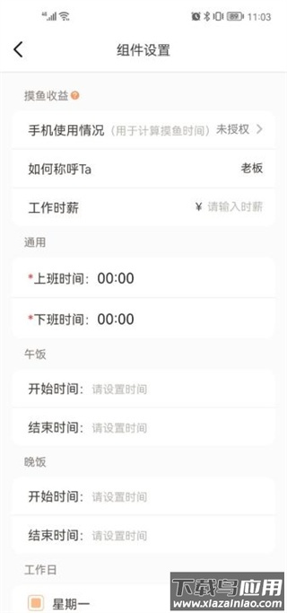 4、进入“组件设置”,可对时间显示、工作日设定等具体参数进行个性化调整,以适应不同使用场景。