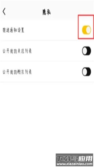 3、进入隐私管理后,点击“推送通知设置”右侧开关按钮即可开启。