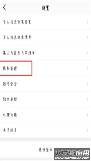 2、在设置页面中选择“隐私管理”选项;