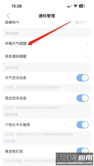 最后找到早晚天气提醒选项,将其右侧的开关按钮打开即可。