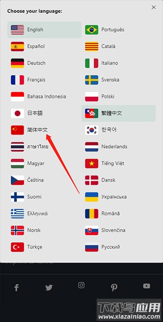 3、在语言列表中找到并点选简体中文,即可完成设置。