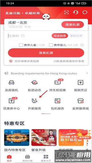 四川航空app官方版如何升舱