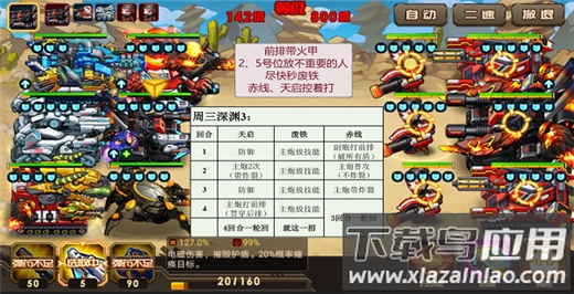 关卡特点:敌方前排废铁具备秒杀满血坦克的能力,后排赤线与天启则擅长范围攻击且血量雄厚,对输出与生存均有较高要求。