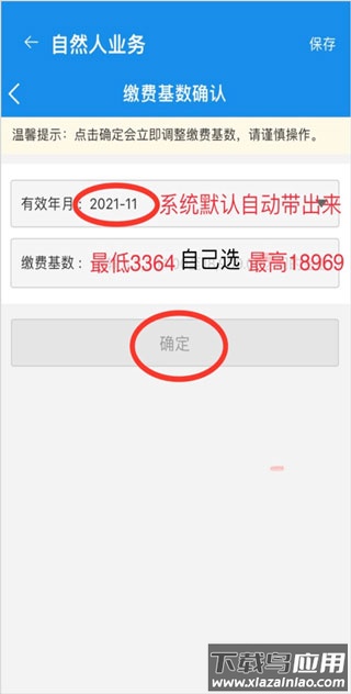 5. 选择有效年月与缴费基数,点击确定。