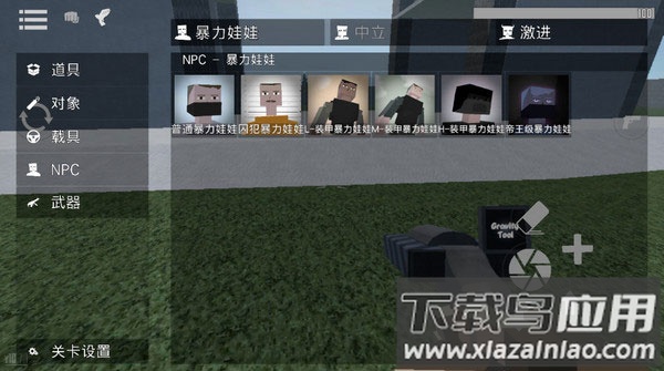 4、关闭背包界面,从菜单中调出工具枪,点击屏幕上的加号图标即可完成NPC的放置。
