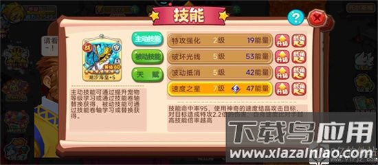 技能状况前文已提及,当技能升级功能开启后,若感觉输出不足可考虑升级技能;技能升级材料主要通过放生宠物获得,相对容易收集。获得第四个技能后,若初始宠物仍在主力阵容,建议优先升级第四技能。