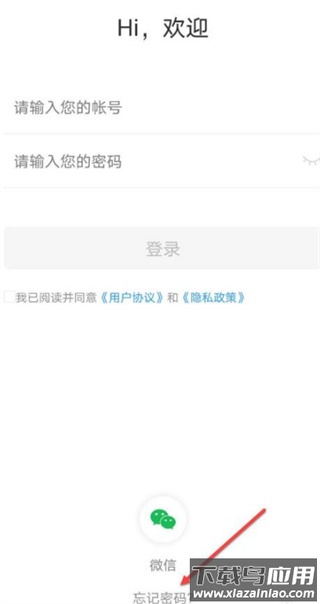 1、下载并启动安全教育平台应用,在登录页面点击“忘记密码”选项;
