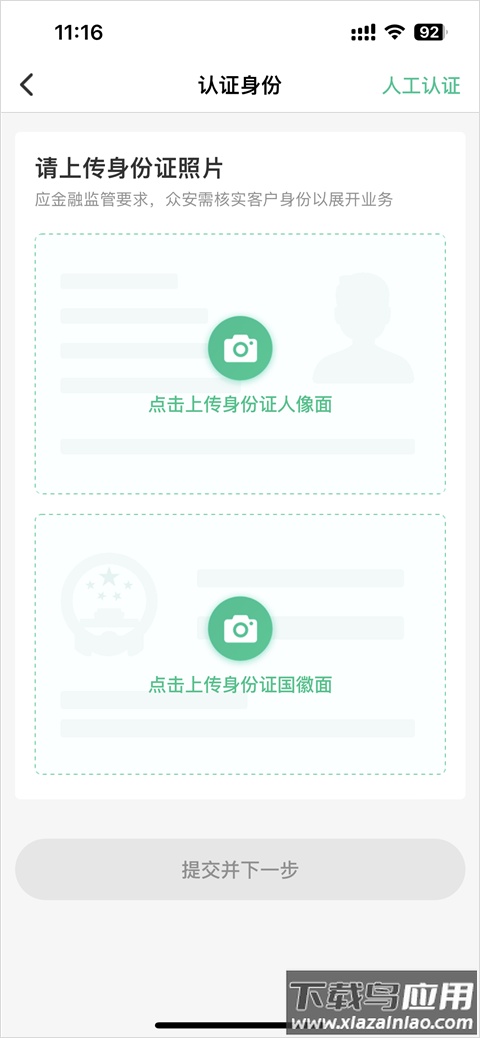 5、若选择身份证认证,需上传身份证正反面清晰照片,提交后完成审核;
