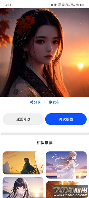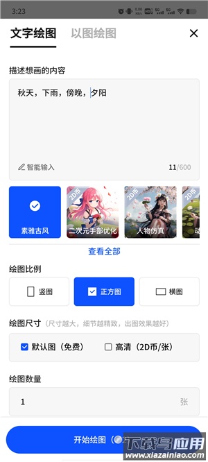 1、通过输入文字描述触发AI生成图像,例如描述“秋天傍晚雨后夕阳”,系统将自动产出相关主题画面;