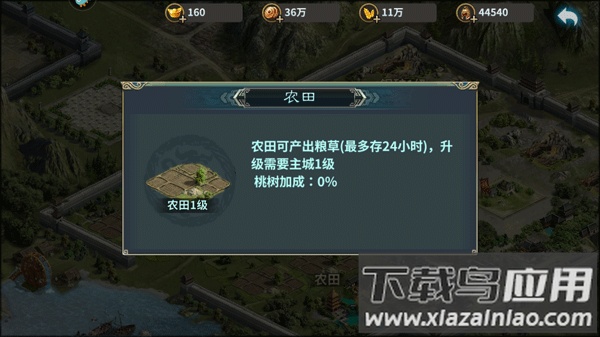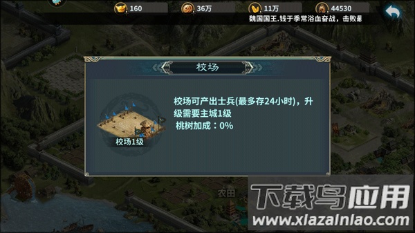 用于训练士兵,可放置部队持续24小时,同时享受桃树产量加成。