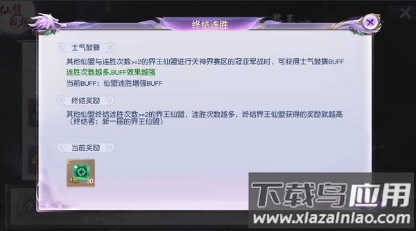 若某仙盟连续多次获胜,为平衡竞技环境,在天神界决赛中其对手将获得增益效果;连胜场次越多,该增益效果越强。