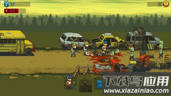 除了派遣单位对抗僵尸,玩家还可投掷油桶造成范围伤害,同时收集勇气值、金币与油料等资源;