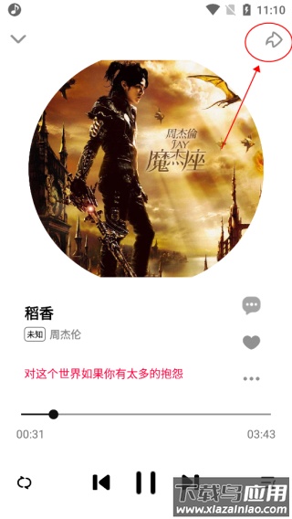 4、点击右上角按钮,可以分享你喜欢的音乐;