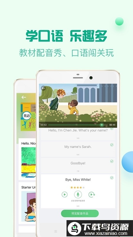 学生可以扮演教材中的角色,亲自为课本动画配音;超过一千个生动场景带来沉浸式体验,让英语学习变得有趣不枯燥。