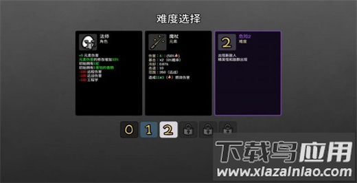 游戏设有5种难度,各自带有不同增益效果。首次通关后所有角色均可选择下一难度,且不同角色通关会解锁专属武器。
