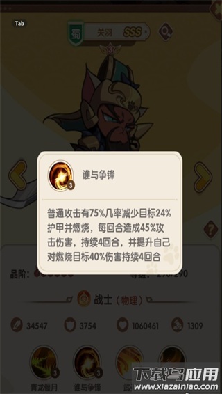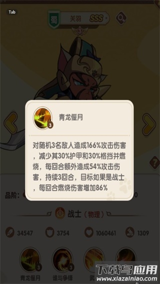 2、作为历史上尊称的武圣,关羽在游戏内实力出众,其一技能青龙偃月能造成高额伤害,同时降低敌方护甲与格挡,破甲效果在后期战斗中尤为关键;