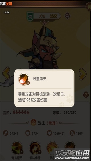 4、三技能主要提升攻击与生命属性,四技能战意滔天则为关羽赋予了反击机制,受到攻击时可对敌方造成可观的反击伤害,结合对燃烧目标的增伤效果,使关羽在非自己回合也能持续输出,真正做到攻防一体,获得关羽的玩家可重点培养。