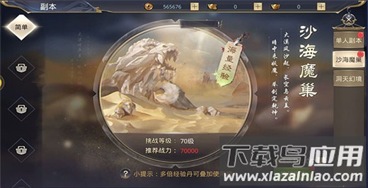 等级提升至73级时,将开启经验副本“沙海魔巢”,进入此副本可使等级飞速增长,实现首日突破百级;该副本每日拥有2次免费进入机会,请务必全部完成;提示:进入“沙海魔巢”前,建议开启全部鼓舞效果与多倍经验加成。