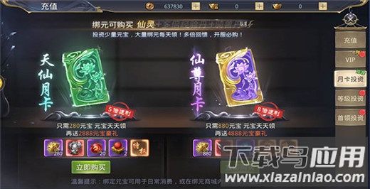 通过少量元宝购买月卡,即可每日领取大量绑定元宝,实现多倍资源回馈,是开服阶段的推荐选择。