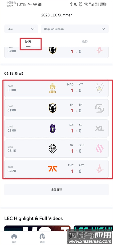 3. 选择match video按钮,进入比赛视频页面。