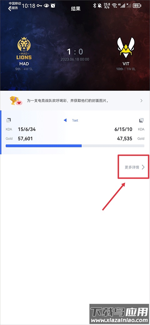 2. 点击所选比赛,查看详细信息。