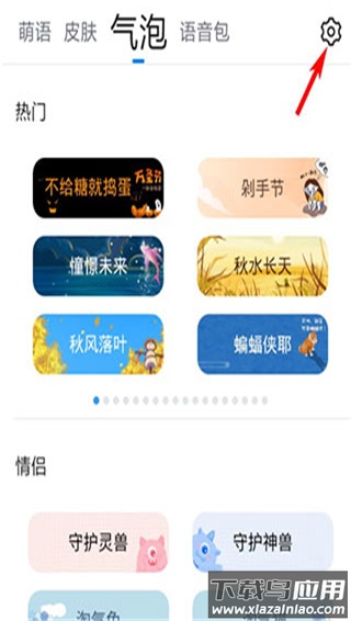 1、安装并启动QQ输入法官方版后,点击界面右上角的“设置”图标;