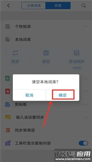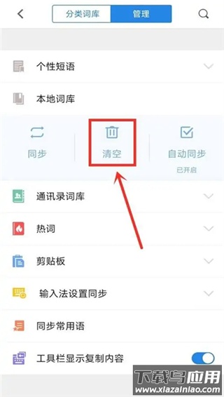 3、进入词库管理界面后,选择下方的“清空本地词库”功能;