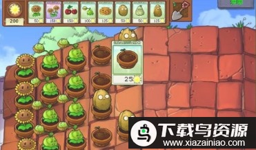 3、此局所有植物都必须种植在花盆中,开局先放置两株向日葵以保障阳光供给。