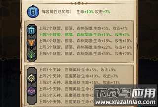 4、玩家上场特定阵营英雄可激活羁绊效果,获得额外的属性增益。