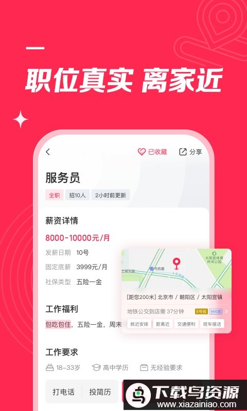 智能算法推荐职位,优先展示距离你近的招聘信息;所有职位经过严格审核,降低求职风险。