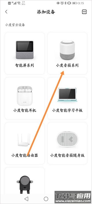 2、选取要添加的设备类型,例如音响系列;