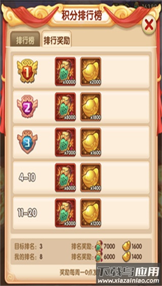 排行榜积分每周一0点重置,并结算上周排名奖励。