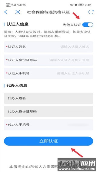 5、如需协助他人认证,请选择“为他人进行认证”,填写相关信息后按步骤操作;