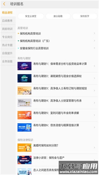 保宝网app官方版是专为保险从业者设计的在线学习平台,提供多样化的专业课程资源。用户可以利用工作之余的空闲时间,随时进入平台学习,内容覆盖岗前培训、专业技能提升、精英进阶以及职业发展规划等多个领域,助力使用者持续巩固行业知识,增强实务能力。