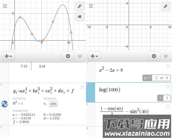 Desmos图形计算器是一款功能全面的数学绘图工具,用户能够借助它轻松绘制多种函数图像,包括极坐标图与笛卡尔坐标图等类型。在绘制过程中,软件提供了丰富的辅助工具,帮助用户对图像进行细节调整,使最终图形呈现更为立体生动的效果。该应用界面设计直观,操作流程简便,同时集成了数字键盘、基础运算符号以及平方、开根、指数、绝对值等专用功能键,即点即用十分便捷。熟练使用后还可自定义快捷键,例如输入“ans”可直接引用上一次计算结果,输入正斜杠即可快速输入分数,这些设计显著提升了日常绘图与计算的效率。