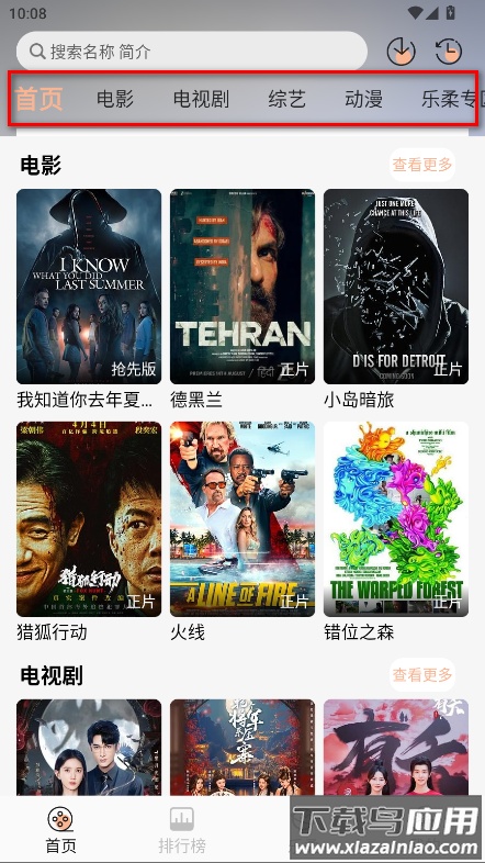 1. 在本站下载安装后打开软件,首页上方会展示最新的电影、电视剧、综艺和动漫等分类内容。