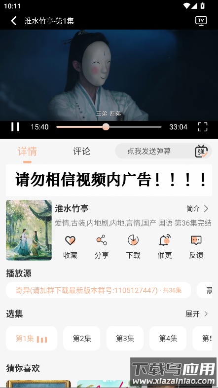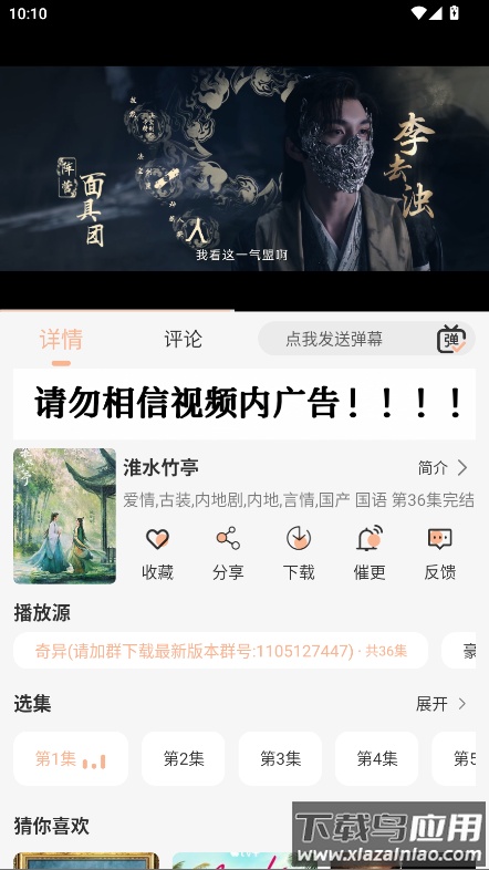 6. 在影片详情页面,你可以使用下载、收藏、分享、催更、投屏以及发送和查看弹幕等多种功能。