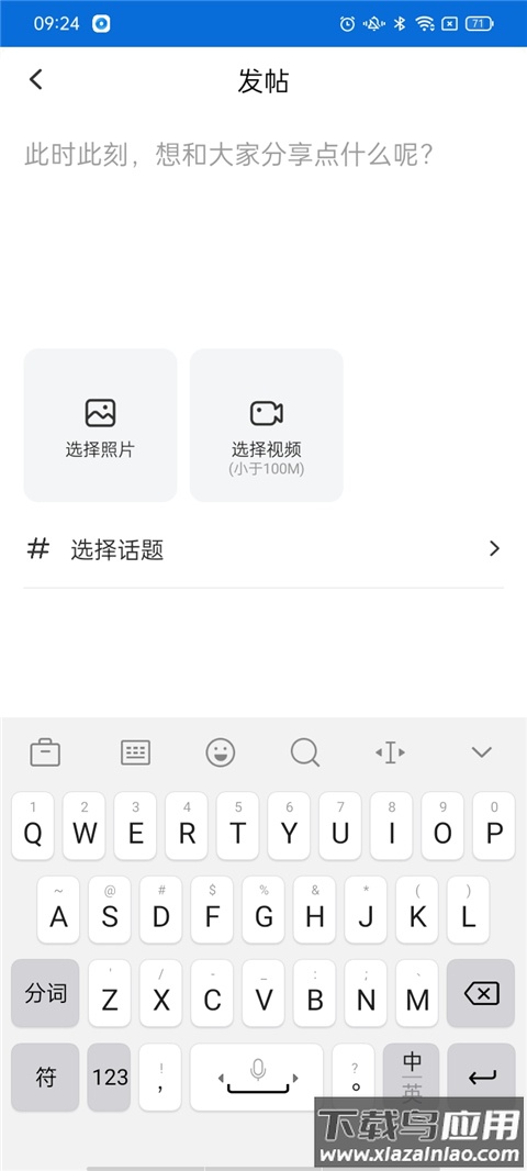 3、这里以发帖为例,点击后即可编辑文字内容,并支持添加照片或视频附件;