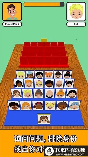 这是一款精彩的休闲闯关游戏,你需要每天不断提出各种问题,逐步筛选并找出隐藏的目标人物。与此同时,对手也在试图调查你的身份,因此必须比对方更快一步完成推理。游戏还支持双人同屏竞技,增添了面对面的互动乐趣。