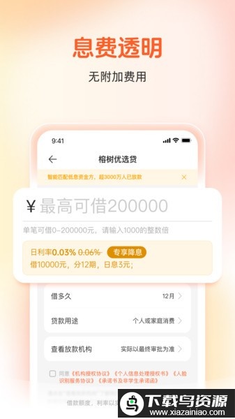 息费透明:借款成本清晰展示,1万元借1天利息最低仅2元起;
