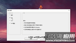 安装完成后启动软件,其界面设计非常简洁。点击【连接】按钮打开连接窗口,可以看到提供了四种连接类型,包括蓝牙、USB、Wifi和Wifi直连。一般情况下,选择Wifi连接即可,这种方式既方便又灵活。